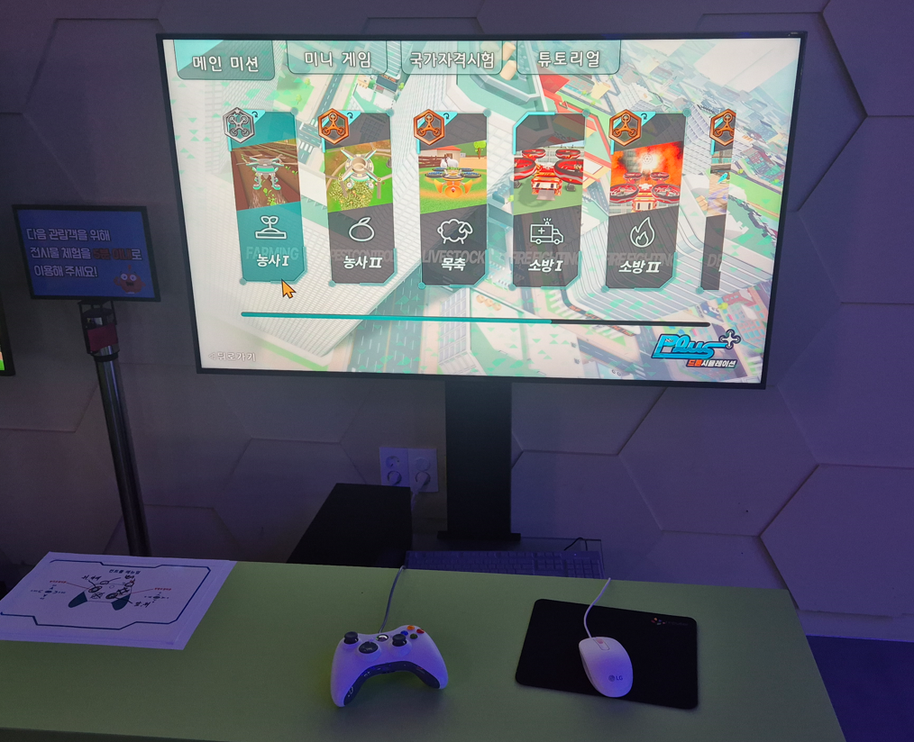 게임 속에서 소방 🚒, 군사 훈련 🪖 등 다양한 미션에 맞춰 드론을 조종하는 체험이에요.