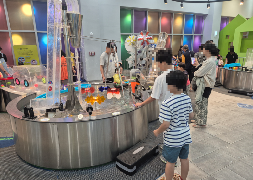 물의 흐름과 원리를 체험하며, 손으로 직접 물길을 만들고 다양한 장치를 움직이는데,