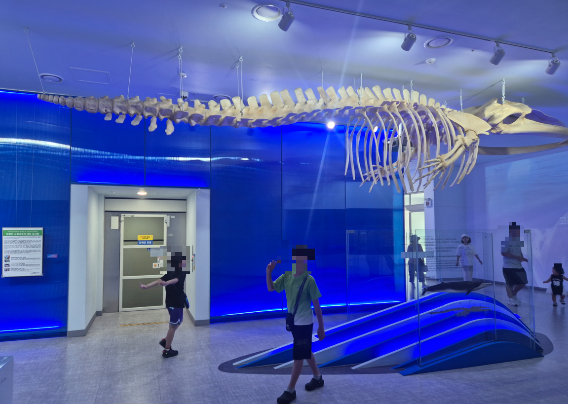 과학관 안으로 들어서면 가장 먼저 눈에 띄는 게 바로 참고래 뼈어린이 그림 입상작 전시예요.