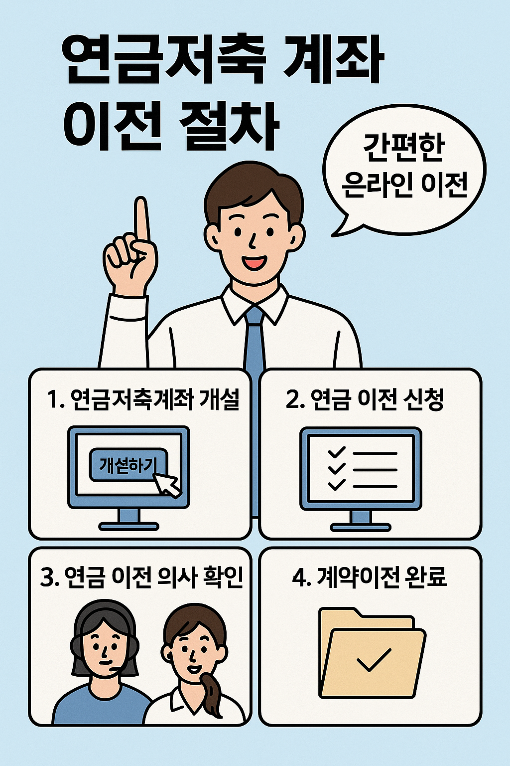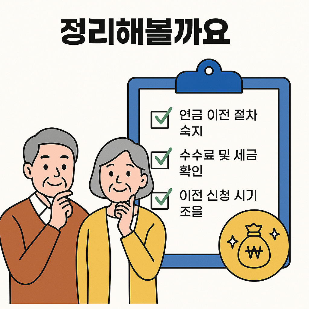 또한 연금수령액이 연간 1,500만 원을 초과하면 종합과세 대상이 될 수 있습니다. 따라서 반드시 ‘이전’ 절차를 통해 세제상 불이익 없이 계좌를 옮기는 것이 중요합니다.
