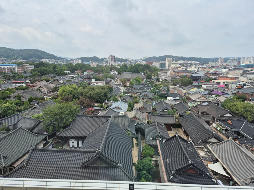 아래 사진은 4층에서 바라본 한옥마을 뷰입니다. 📸✨
