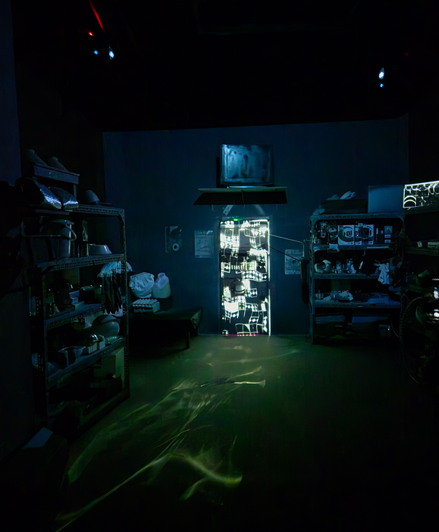 그러던 중 갑자기 불이 꺼지고 라디오 방송이 흘러나오더니, 자판기 문이 열리면서 신비로운 공간 속으로 빨려 들어가는 듯한 특별한 체험이 시작됩니다.