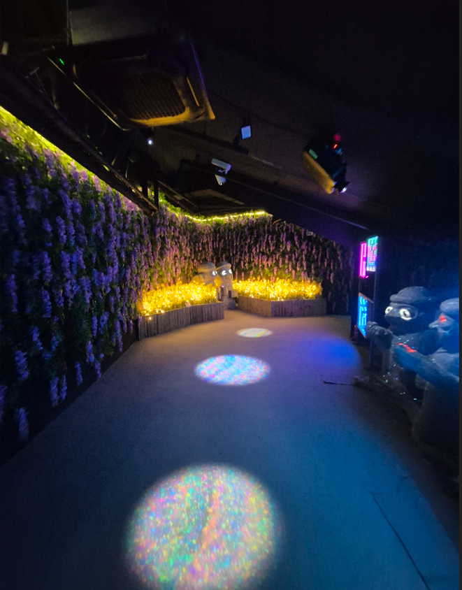 이후 미디어 아트 전시관으로 들어갈 수 있는데 화려한 빛과 영상으로 꾸며진 전시 공간으로 가득 꾸며져 있었습니다.