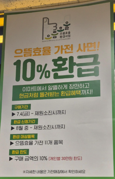 👉 환급 금액: 구매 비용의 10% (개인별 최대 30만원)