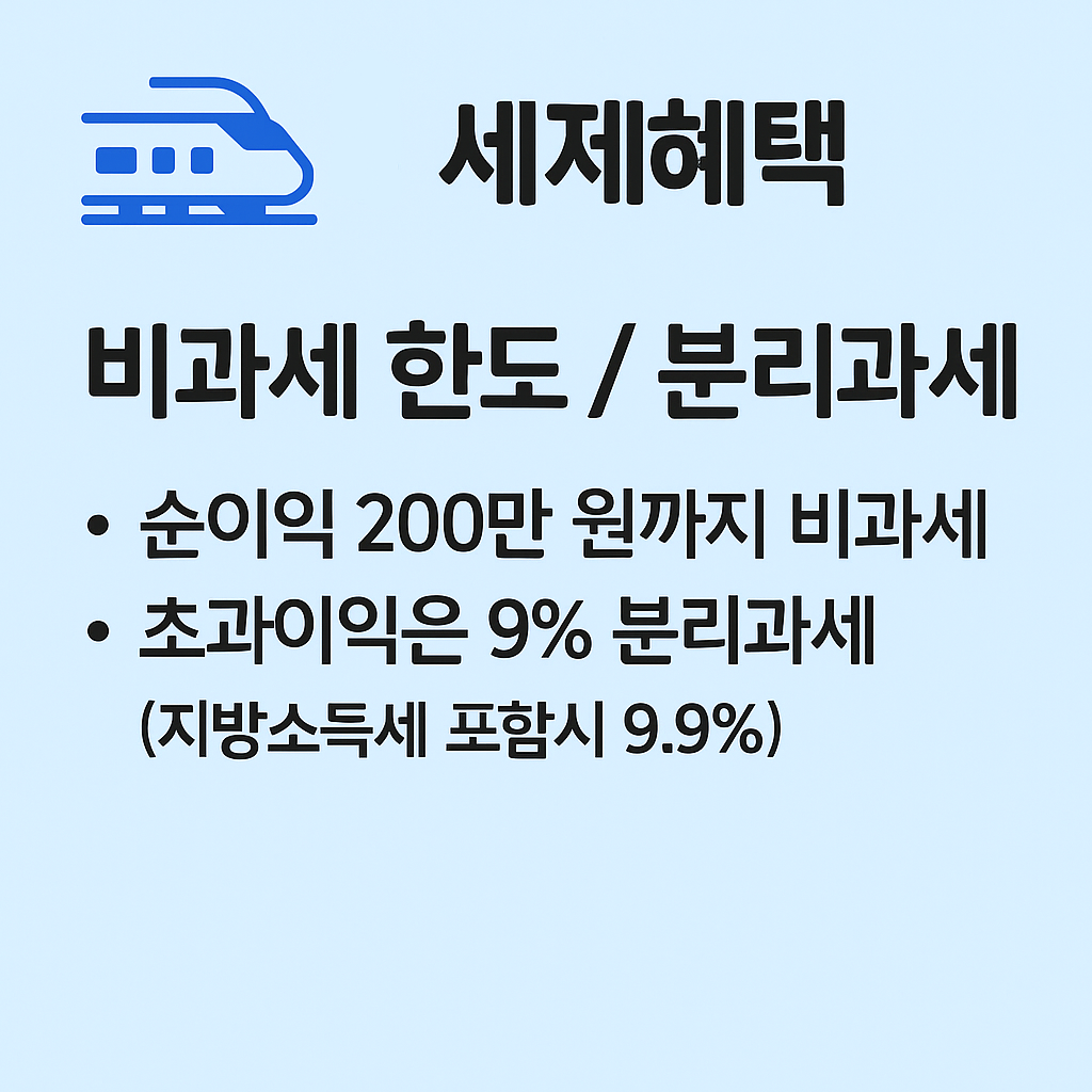 | 구분 | 비과세 한도 | 분리과세 세율 | 대상 조건 |