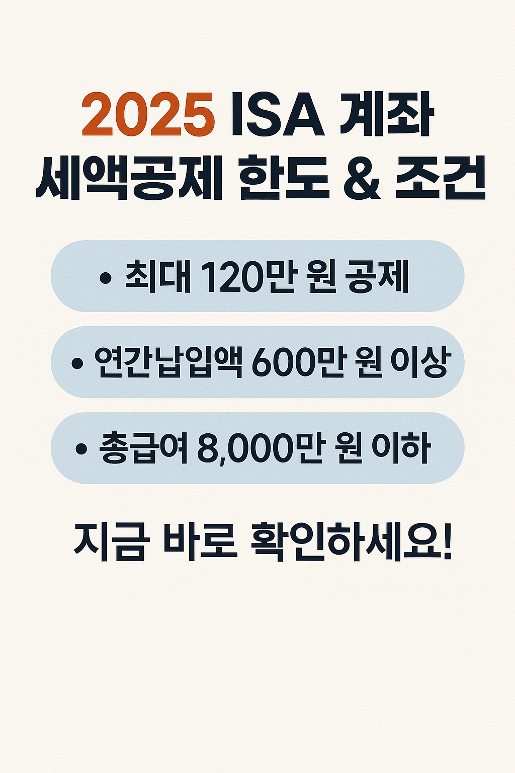 2025년 ISA 계좌는 단순한 금융상품이 아니라 세금 절약 + 자산 형성을 동시에 잡을 수 있는 제도입니다. 비과세 한도와 가입 조건을 확인하고, 나에게 맞는 유형을 선택한다면 절세 효과는 더욱 커집니다. 👉 올해 안에 ISA 계좌를 개설하지 않으면 이 기회는 남의 몫이 됩니다.