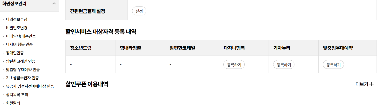 모든 할인제도는 코레일멤버십 회원 가입 후 등록해야 합니다.